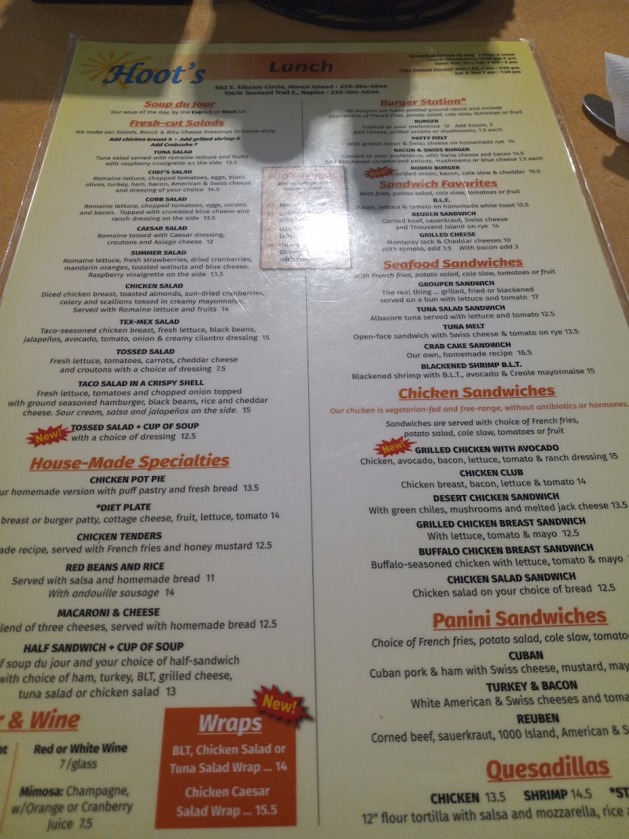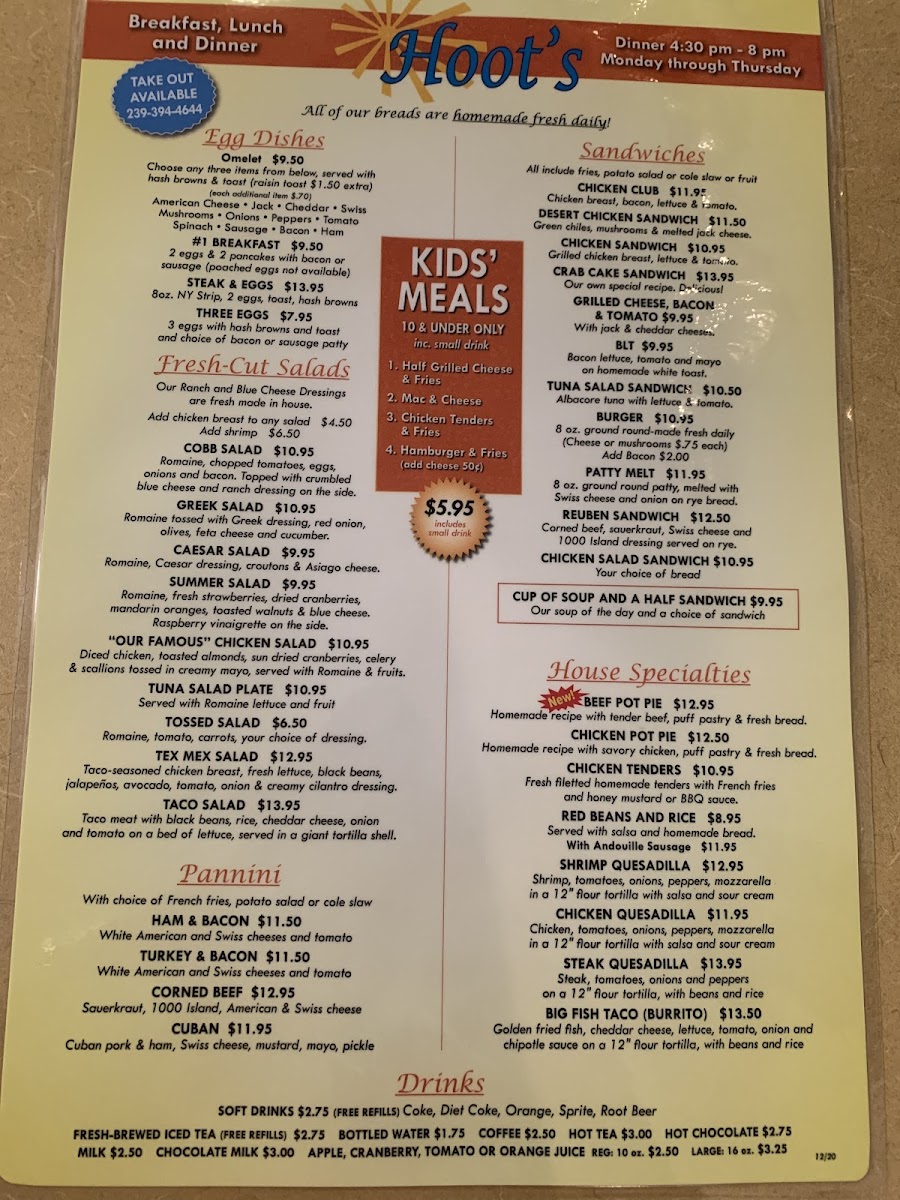 Welcome to Hoot's Breakfast & Lunch, a delightful hidden gem located in Marco Island, Florida. Renowned for its warm atmosphere and quick service, this cozy diner specializes in home-cooked breakfasts and lunches that satisfy every palate.